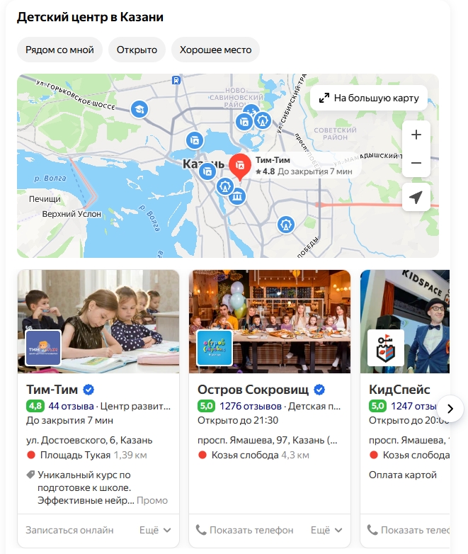 Яндекс Бизнес — один из ключевых каналов привлечения клиентов для локального бизнеса. Это особенно актуально для направлений, в которых родители ищут услуги поблизости: кружки, секции, детские клубы и развивающие занятия.